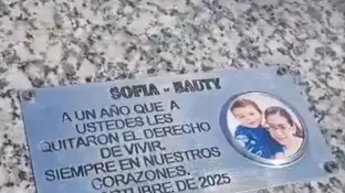 Familiares y vecinos colocaron una placa y plantaron un árbol en la plaza donde solían jugar Sofía y Bautista, asesinados por su madre hace un año. Reclaman justicia y una condena perpetua.