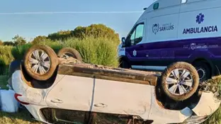 Producto de dicha maniobra, el automóvil mordió la banquina y terminó volcado.