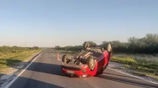 El rodado, un FIAT Mobi, quedó con las ruedas hacia arriba en la carpeta de la ruta nacional 147. La conductora no sufrió heridas.