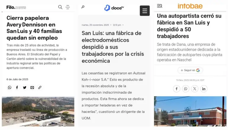 El país enfrenta una crisis laboral sin precedentes. No es exageración. Con una notable falta de políticas industriales, cada vez más firmas concretan despidos en medio de un escenario terrible, de asfixia ante las importaciones. La provincia de San Luis ya sufre las consecuencias de las políticas liberales, que llevaron a dejar "en la calle" a alrededor de 150 personas, de manera directa o indirecta.