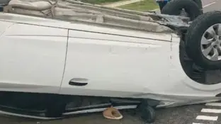 El vehículo siniestrado el domingo al anochecer fue un Chevrolet Onix blanco que quedó con las cuatro ruedas para arriba. Ante la fuga de gas, los bomberos tuvieron que forzar una de las puertas traseras, aflojar los asientos y de esta forma lograron cerrar el tubo de gas. Luego continuaron con tareas preventivas mediante el corte del suministro eléctrico y la desconexión de la batería.
