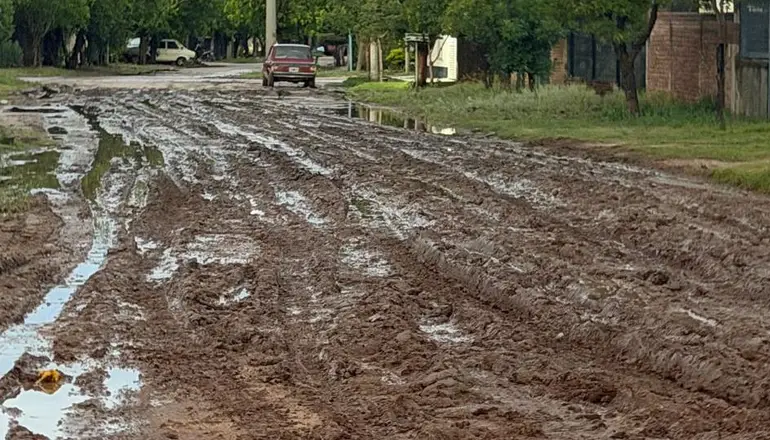 Los vecinos dicen que en todo el pueblo, ante cada lluvia, hay charcos de lodo y arterias intransitables. Furia en las redes sociales.