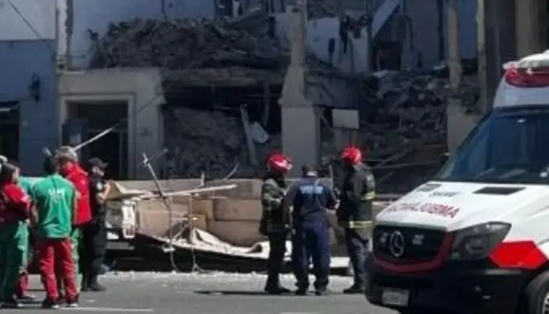 Fuentes policiales informaron que el siniestro se registró en las avenidas Libertador y Juramento, donde se produjo la caída de mampostería.