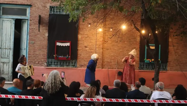 La obra protagonizada por Belén Pueta y Virginia Díaz, con musicalización de Guadalupe Mediavilla, propone un rato para pensar sobre el tiempo, la muerte, el odio y los vínculos con presentaciones en calles, patios y plazas.