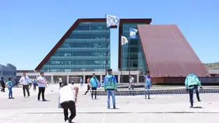 La primera impresión que uno tiene al entrar al primer subsuelo del edificio La Herradura, de Terrazas del Portezuelo, no es la de oficinas gubernamentales. Con una estructura en L y compartiendo con otras áreas de la Casa de Gobierno las ventanas vidriadas y espacios amplios sin cubículos, lo que la diferencia son las miradas de Diego Maradona, Charly García y una mujer de perfil que son los murales que recibieron ayer a más de 250 chicos del interior de la provincia y unas decenas más de la capital para realizar "La Despedida", un evento en que el Programa Juventud del Gobierno regaló a promociones de escuelas baile, deportes, premios y comida en un escenario poco usual, pero que seguro quedará en la memoria de los chicos.