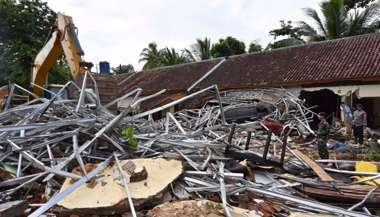 Este lunes, equipos con excavadoras y otro material pesado trabajaban en la búsqueda de sobrevivientes entre los escombros. Cientos de edificios resultaron dañados por la ola, que golpeó playas del sur de la isla de Sumatra y del extremo occidental de Java alrededor de las 21:30locales (11:30 de la Argentina del sábado).