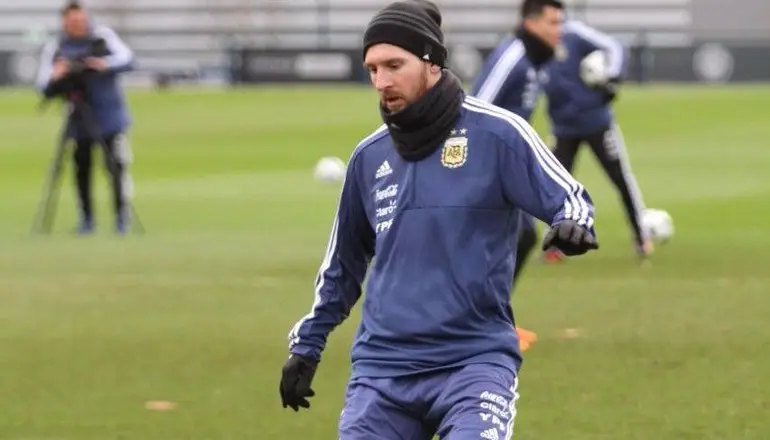 La Asociación del Fútbol Argentino (AFA) publicó un video del arribo de Messi a la concentración, muy relajado y bien abrigado con un camperón de cuero para combatir la cruda ola polar que azota a toda Europa.