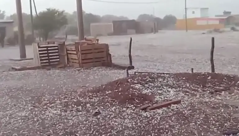 Acorde a el alerta por tormentas fuertes, que amenaza la provincia desde este lunes, la localidad del Departamento de Belgrano fue “bombardeada” por el granizo, que si bien no era de gran tamaño, se hizo sentir. “Fue solo acá, en San Isidro, a unos kilómetros de distancia, no cayó una sola piedra”, informó a El Diario Soloa.