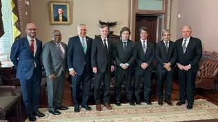 Casi al mismo tiempo Milei mantenía este martes un encuentro con el consejero de Seguridad Nacional norteamericano, Jake Sullivan, y el director senior del Consejo de Seguridad Nacional para el Hemisferio Occidental, Juan González, donde expresó "su mirada sobre la agenda geopolítica internacional alineada con Occidente y su defensa de los valores de la libertad".