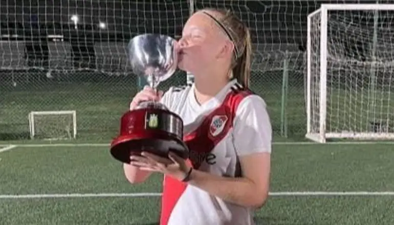 Angelina Pérez la rompe en River, la puntana que juega de lateral por ambas bandas, llegó hace menos de 10 meses al equipo de Núñez y se ganó un lugar entre las titulares y ahora levantó la copa de campeona Sub 14 del fútbol formativo de AFA.