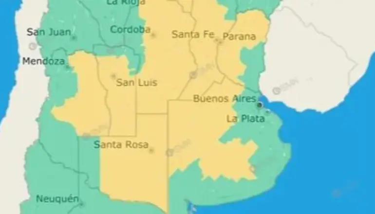 A la vez, el ente nacional relanzó un alerta por tormentas fuertes con posible caída de granizo y ráfagas que podrían hacer el que fin de semana termine con algunas lluvias.