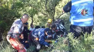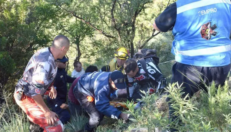 Dos motociclistas fueron rescatados tras caer por un barranco en Merlo