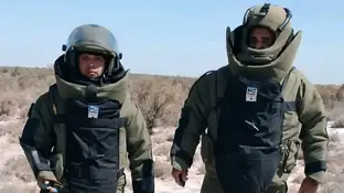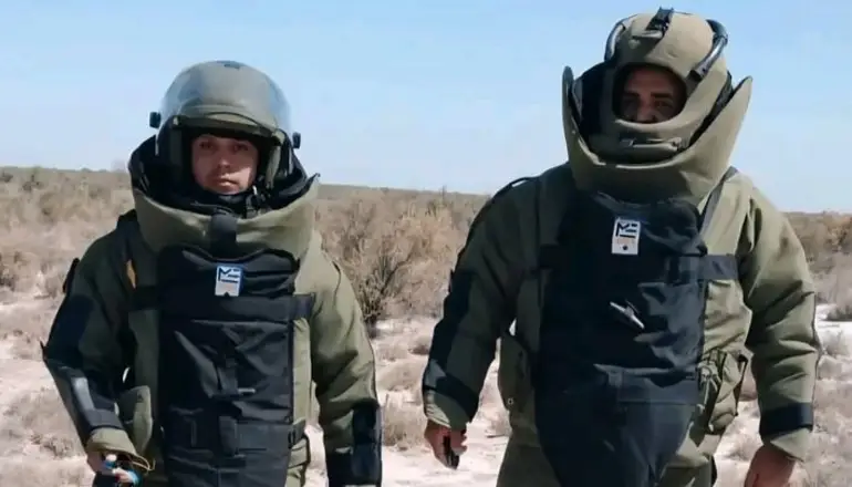 Personal de la División Explosivos, de la Dirección General de Bomberos de San Luis, intervino en un operativo de desactivación y destrucción de un proyectil de gran calibre. Aplicaron un procedimiento técnico específico.