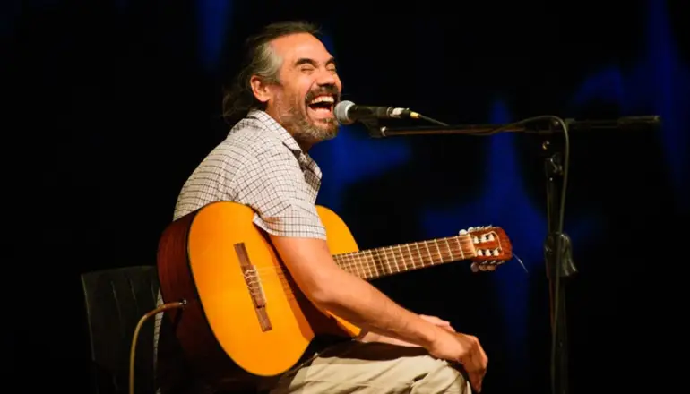 La sonrisa de José Luis Aguirre, tan amplia como contagiosa, no se borra por nada del mundo. Ni por el clima social que describe con certeza serrana, ni por la escasa concurrencia que puedan tener sus recitales en tiempos donde vender una entrada es difícil para cualquiera. En cualquier circunstancia, el poeta cordobés muestra sus dientes y sus canciones.