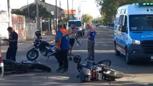 Una mujer y un efectivo de la Policía de San Luis tuvieron que recibir atención médica como consecuencia de las lesiones que sufrieron al colisionar con las motos que conducían, en la esquina de Riobamba y Juan Bautista Alberdi, en la ciudad de San Luis.