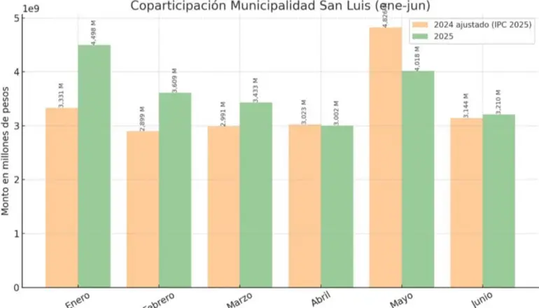 La coparticipación en San Luis creció 7,7% real en el primer semestre de 2025