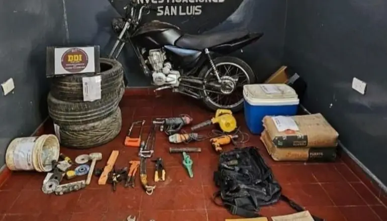 Herramientas de mano y eléctricas, bolsas de cemento, neumáticos, teléfonos celulares y una motocicleta Motomel 150 cc con sus números de identificación adulterados, fueron secuestrados en allanamientos realizados en viviendas situadas en la zona norte de la ciudad de San Luis.