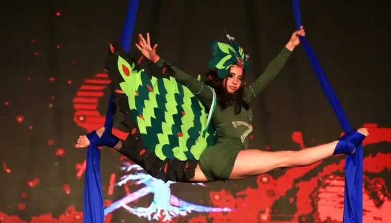 Camila, de 17 años, lidera una escuela de acrobacia sobre telas llamada Renacimiento Aéreo, en Villa de Merlo. La escuela viene de lograr diferentes hitos, como su paso por el Azul Fest World Championship, en San Luis. Allí sus alumnas mostraron destreza, talento y constancia.