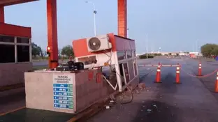 Un camión con una enorme estructura de hierro arrancó una cabina de peaje