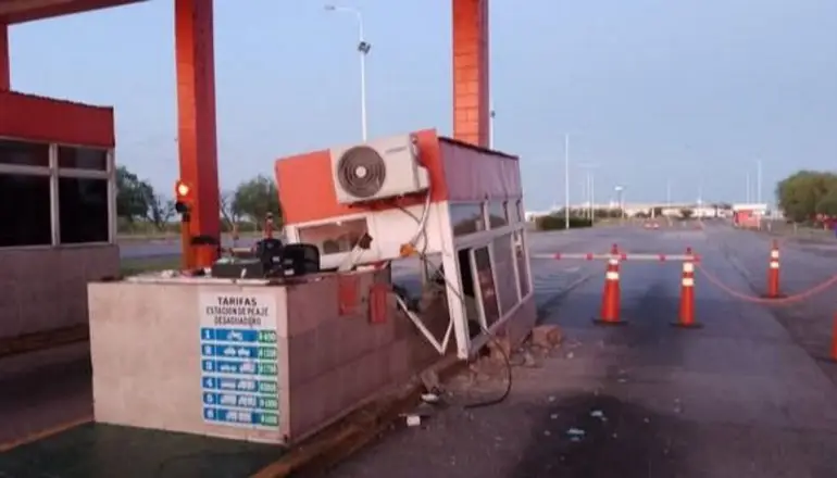 La estructura de hierro que transportaba una camión Iveco por la Autopista de las Serranías Puntanas estaba más de tres metros excedida hacia uno de los costados, lo que provocó que al pasar por la cabina de peaje de Desaguadero la arrasara por completo. Solo el hecho de que en el espacio no había empleados porque había jornada de fumigación evitó una tragedia.