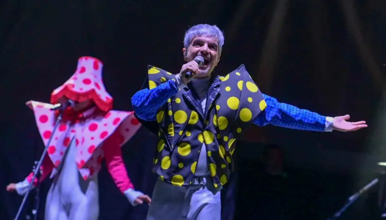 Por momentos, el multitudinario concierto de Miranda del sábado a la noche pareció un musical futurista en el que cinco bailarinas interpretaron personajes de trajes brillantes y atmósfera interplanetaria, un concepto reforzado por las proyecciones en la pantalla y los bailes robóticos de los cantantes.
