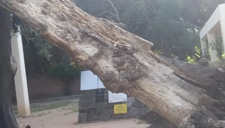 Justo en un fin de semana largo en el que se espera que algunos turistas lleguen a las localidades del interior de la provincia, un árbol seco que estaba en los alrededores de la escuela fundada por Domingo Faustino Sarmiento, un atractivo central de San Francisco del Monte de Oro, cedió y cayó en cercanías del edificio.