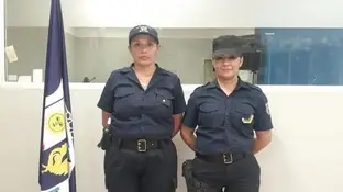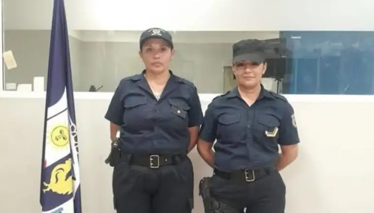 La subinspectora Etelvina Moyano y la cabo primero Natalia Trigo, asistentes de un momento inolvidable. Foto: Policía de la Provincia.