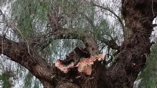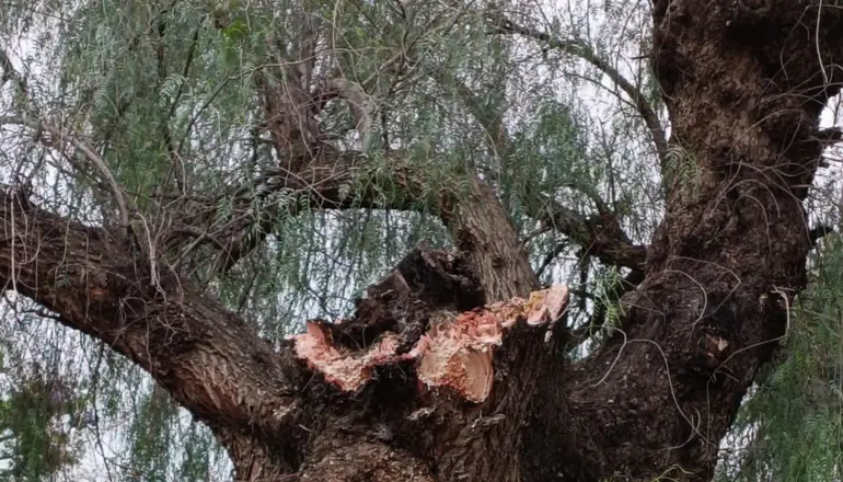 “En este caso este enorme brazo estaba en muy malas condiciones, podrido y el viento norte lo tiró. Pudo haber sido mucho peor porque por acá circula mucha gente. Estos árboles están en muy malas condiciones y nos los cuidan. Ramas como esta y otras secas, no las tienen que dejar porque son un verdadero peligro”, advirtió el vecino.