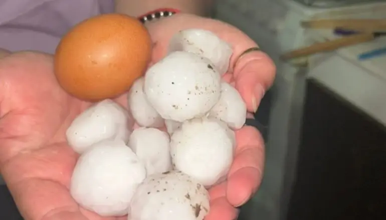 Cerca de las 24:00, vecinos del norte puntano empezaron a difundir fotos de las piedras del tamaño de un huevo que cayeron en la localidad del Departamento Belgrano. “Fue cerca de las 23:00. Algunas eran de gran magnitud, después vino un granizo más chico y felizmente para esta zona, llovió”, describió una autoridad de la comuna.