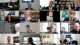 “Advierto que no todos los imputados aparecen en cámara. El Tribunal debe velar por la presencia de todos, les pido a las personas que no aparecen en cámara que lo hagan y arbitren las medidas necesarias para que yo los pueda ver”, expresó el juez.