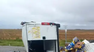 Por razones que aún no han sido determinadas, perdió el control del volante y el furgón tras cruzar el cantero central y terminó volcado sobre su lateral izquierdo en la calzada contraria, próximo a la rotonda de retorno ubicada en ese sitio.
