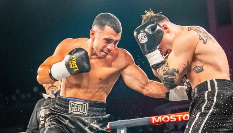 El influencer puntano dio show desde el momento en que salió hacia el ring bajo el influjo de "Lost tape", el tema de Duki con C.R.O. que musicalizó su entrada. Además de por sus entrenadores, Gero estuvo acompañado para la última pelea de la noche por un nutrido grupo de amigos, entre los que estaba su padre, el actor puntano Gabriel Arias.