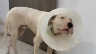 La mascota de 9 meses que se lastimó huyendo de los ruidos de los fuegos artificiales volvió a caminar y a tomar agua.