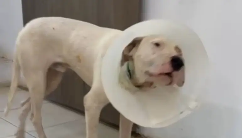 “Ayer fue atendido por un veterinario que vino de otra localidad con su equipo y lo pudieron suturar. Le hicieron cuatro puntos en una manito que ahora tengo que quitarle la venda. También le administraron una medicación, ya que tuvieron que sedarlo para que pudiese ser atendido. Sigue con curaciones, esto será así por un tiempo”, detalló.