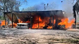 Una camioneta y tachos de miel quemados en un incendio en Juana Koslay