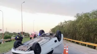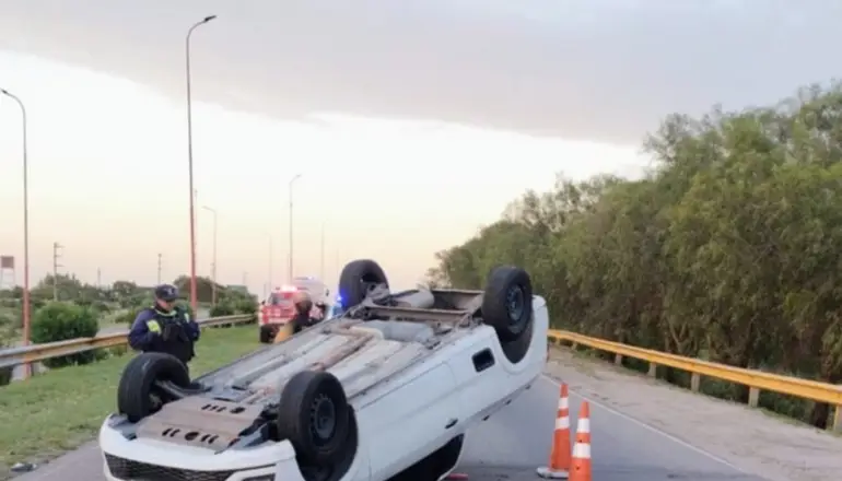 Por razones que se tratan de establecer perdió el control del vehículo (se desplazaba en sentido este a oeste) y terminó volcado sobre la carpeta asfáltica con sus cuatros ruedas hacia arriba.