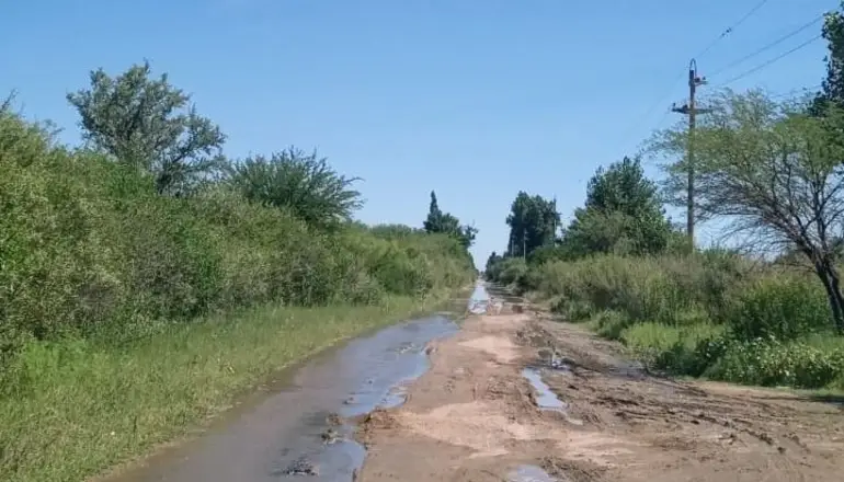 El 24 de diciembre hubo una intensa lluvia y por la correntada se desbordó un canal. "Avanzó sobre el camino que se convirtió en una laguna", señaló la joven y para respaldar lo que describió envió fotografías del "camino de los pozos, agua y barro".