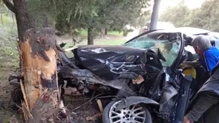 Fue protagonizado por un automóvil Volkswagen Bora negro que se estrelló contra un árbol y quedó totalmente destruido.