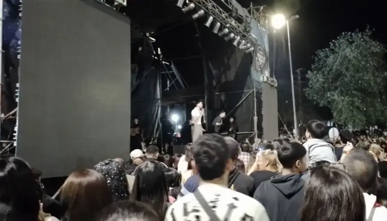 Como solo hacen los grandes, el dúo sacó adelante el espectáculo con una guitarreada improvisada. Solo con una guitarra de cuerdas de nylon, sin conexión a parlante, y un bombo de fondo, trazaron melodías que levantaron fuertemente el entusiasmo en el público. Si no fuera por el talento de los artistas, la noche hubiese estado en aprietos.