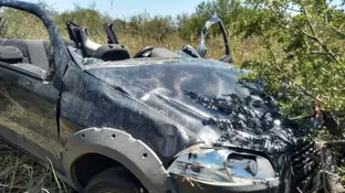 Quedó atrapada entre los hierros tras volcar en la ruta 5