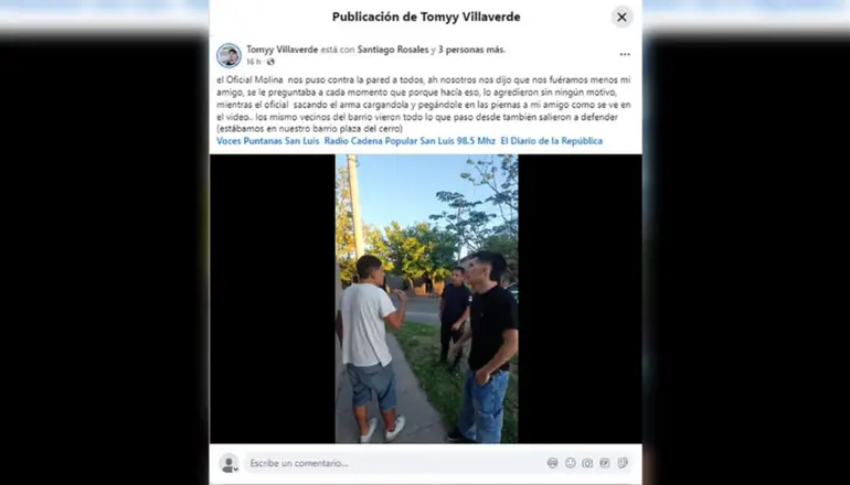 Sin embargo, testigos del barrio Plaza del Cerro sostienen una versión completamente distinta de los hechos. "El oficial Molina nos puso contra la pared a todos, nos dijo que nos fuéramos menos a mi amigo, que a cada momento le preguntaba por qué hacía eso. Lo agredieron sin motivo, mientras el oficial sacaba el arma, la cargaba y le pegaba en las piernas a mi amigo", relató un joven que presenció el episodio y que asegura que todo quedó registrado en un video.