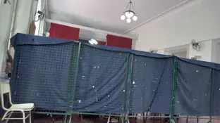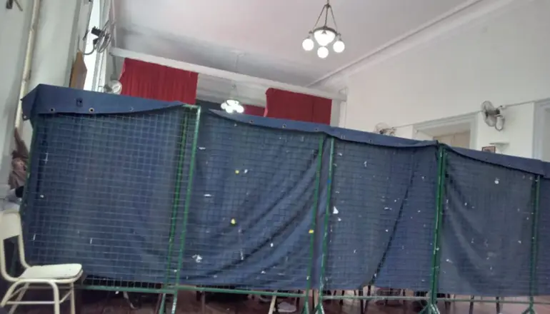 Los seis cursos de sexto años no tienen aulas para estudiar. Dos están en el salón de actos, separados por una tela que parece de una serie carcelaria de Netflix.
