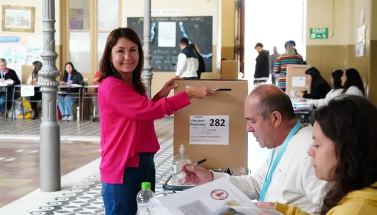 En busca de retener su banca en el Concejo Deliberante de San Luis, la concejal Paulina Calderón emitió su voto en la escuela Paula Domínguez de Bazán. “Estoy bastante nerviosa y ansiosa: queremos un lindo resultado ara nuestro partido”, dijo.