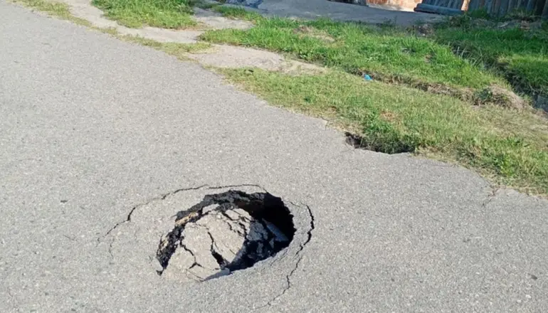 La rotura está frente al hotel Posada Spa Terrazas, entre las calles Los Olivos y Los Paraísos, una zona muy transitada en Potrero de los Funes. Allí se ve el hundimiento del asfalto sin que nadie de la Municipalidad atine a arreglarlo.