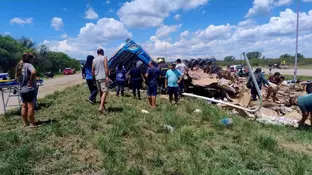 Corridas y saqueos por el vuelco de un camión cargado con pollos congelados