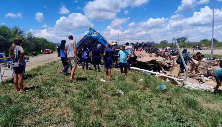 Cientos de personas aprovecharon para llevarse las cajas que quedaron tiradas en la ruta. El conductor resultó lesionado.