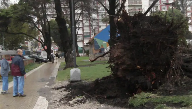 El viento provocó la voladura de techos, postes de luz y cientos de sombrillas. Asimismo, cayeron árboles en la zona céntrica, lo que interrumpió parcialmente el tránsito y también el servicio eléctrico.