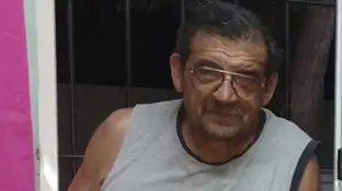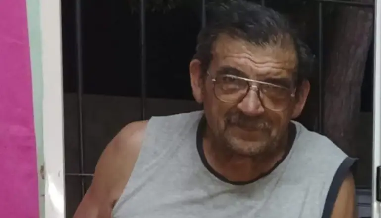 Tiene 65 años y su estatura es de 1,90. Al momento de ausentarse vestía una camisa a cuadros y un pantalón jeans.