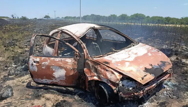El accidente fue cerca de Buena Esperanza. Fue protagonizado por una pareja que viajaba en un automóvil, que tras morder la banquina derrapó, volcó y se prendió fuego, ocasionando una quema de pastizales.