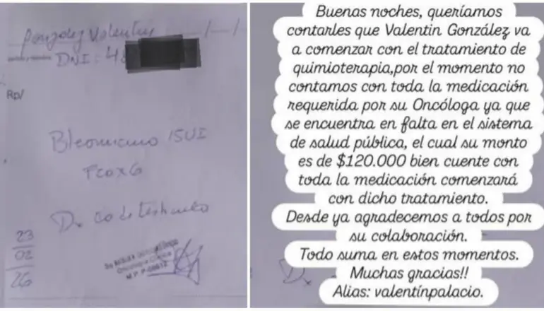 La comunidad se moviliza para recaudar fondos destinados al tratamiento oncológico de Valentín González. El medicamento necesario tiene un costo de $120.000 y no se consigue en el sistema de salud pública.